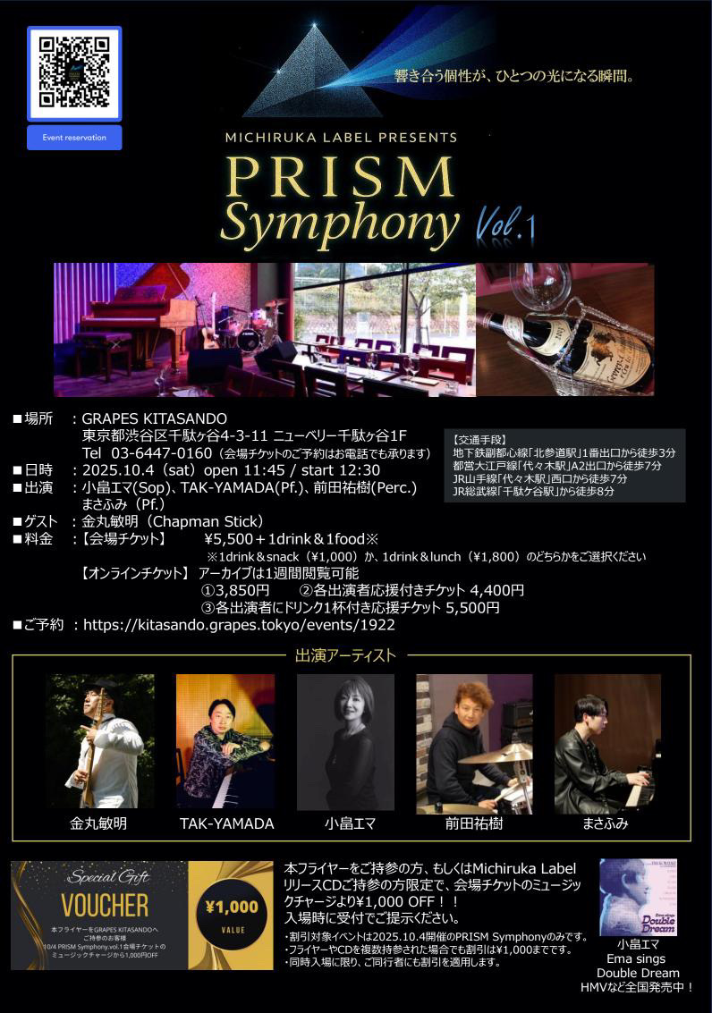Ema kojima( Vo)/Toshiaki Kanamaru(ChapmanStick) / TAK YAMADA(P) / YUKI MAEDA (Per)/ MASAFUMI(P)